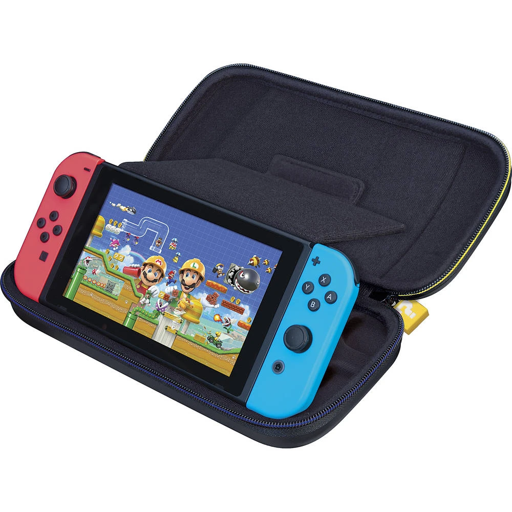 In deze Mario Maker deluxe beschermhoes is je Nintendo Switch veilig en goed beschermd. De gevoerde hoes biedt bescherming aan het scherm en biedt een stoffen opbergvak voor Joy-Con-polsbandjes en extra Game Cards. Met deze hoes is je Nintendo Switch goed beschermd.