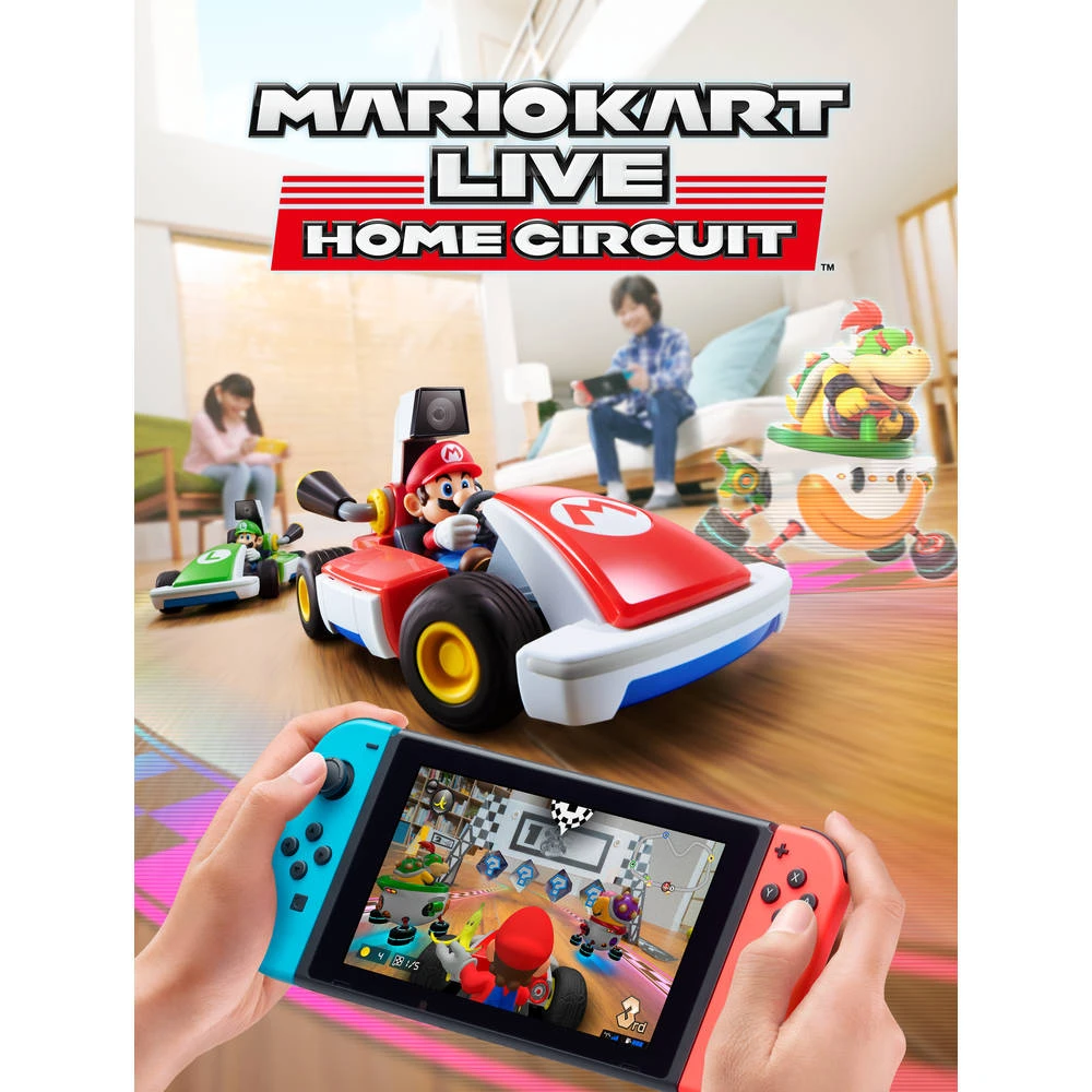 Het door Nintendo en Velan Studios gemaakte Mario Kart Live: Home Circuit haalt het plezier van de Mario Kart-serie naar de echte wereld met een Nintendo Switch of Nintendo Switch Lite doordat spelers met een fysieke kart om de eerste plaats racen. De kart reageert op boosts in de game en de echte wereld, komt tot stilstand als de speler in de game wordt geraakt door een voorwerp en kan op verschillende wijzen worden beïnvloed, afhankelijk van de race. Spelers plaatsen poortjes om in huis een route uit te stippelen in een vorm naar wens. Race in grand prixs tegen Koopalings om skins voor parcours en kostuums voor Mario en Luigi vrij te spelen en speel met maximaal vier spelers in de lokale multiplayerstand.