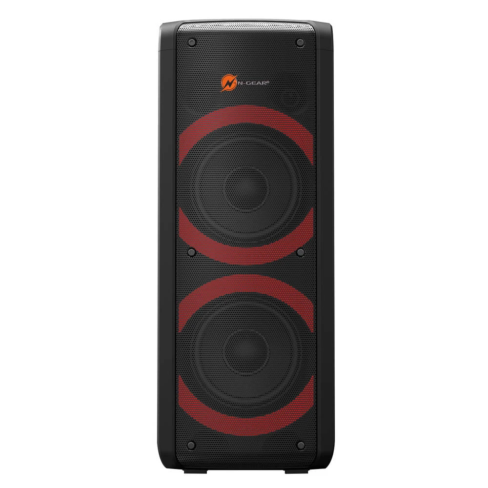Met de Let’s Go Party Speaker van N-Gear heb je het feestje aan je hand! Dankzij het handvat neem je het feest overal mee naartoe. De Let’s Go Party Speaker heeft twee 6,5 inch woofers, een vermogen van 450 Watt en een speeltijd tot 4 uur op een volledig opgeladen accu! Verbind je telefoon of tablet via Bluetooth en zing mee met je favoriete liedjes via de bijgeleverde microfoon. De ingebouwde disco verlichting in de woofers, die synchroniseert met de muziek, maakt je feest helemaal af.