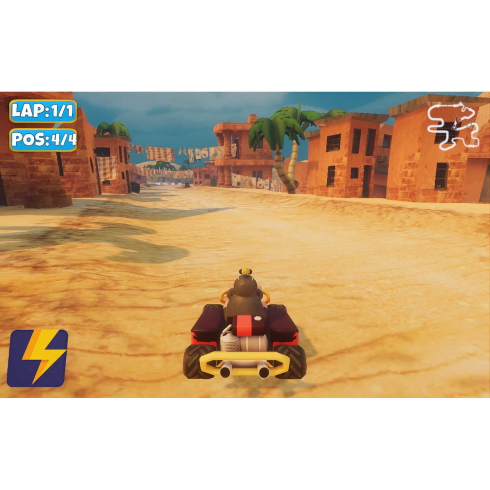 Eerlijk spelen? Zeker niet! Verzamel wapens en power-ups om ervoor te zorgen dat jouw tegenstanders niet zullen winnen. Wanneer jij jezelf hebt bewezen in de kampioenschappen, daag dan andere spelers uit van over de hele wereld in de online multiplayer modus voor 7 spelers. Of blijf dichter bij huis en race tegen je vrienden in de lokale multiplayer modus voor 4-speler split-screen chaos! Waar wacht je nog op? Stap in jouw kart en ga de weg op!