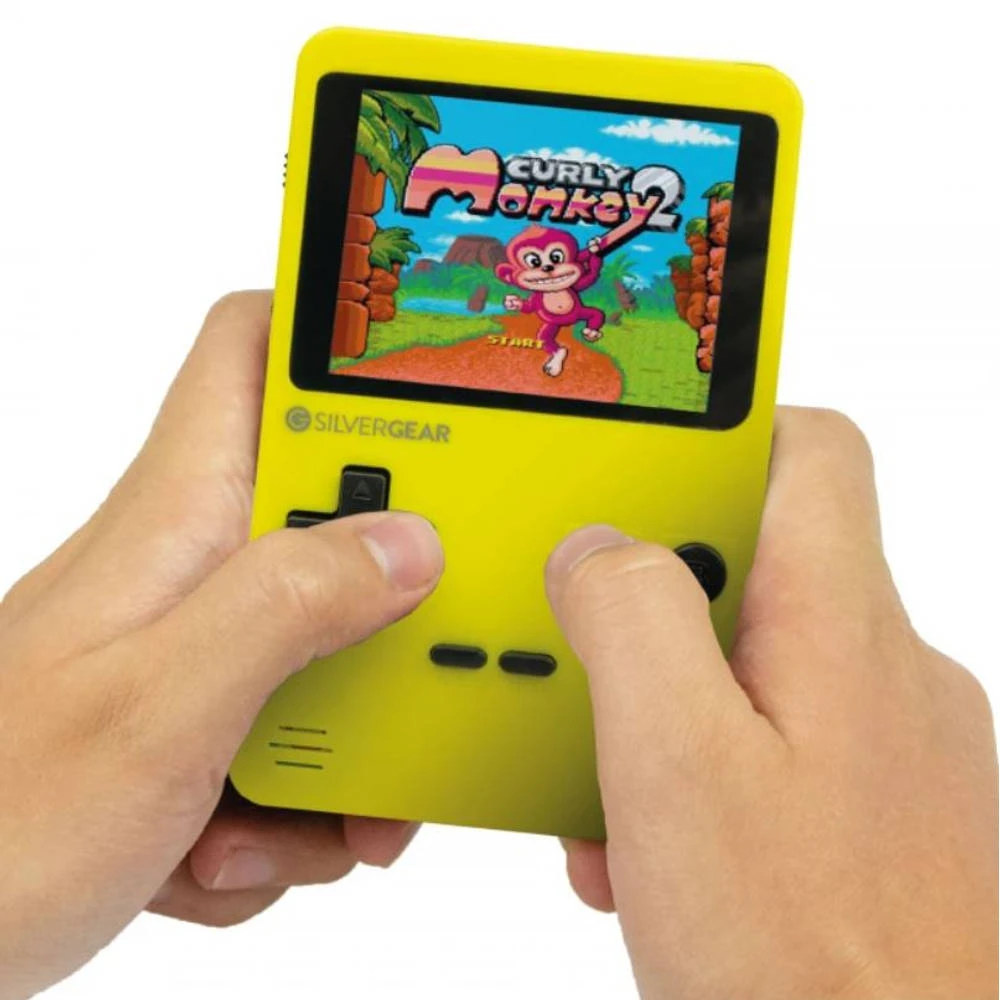 Liefhebbers van klassieke gametunes en retrogames halen hun hart op met de gele Silvergear Mini Retro Arcade spelcomputer!
