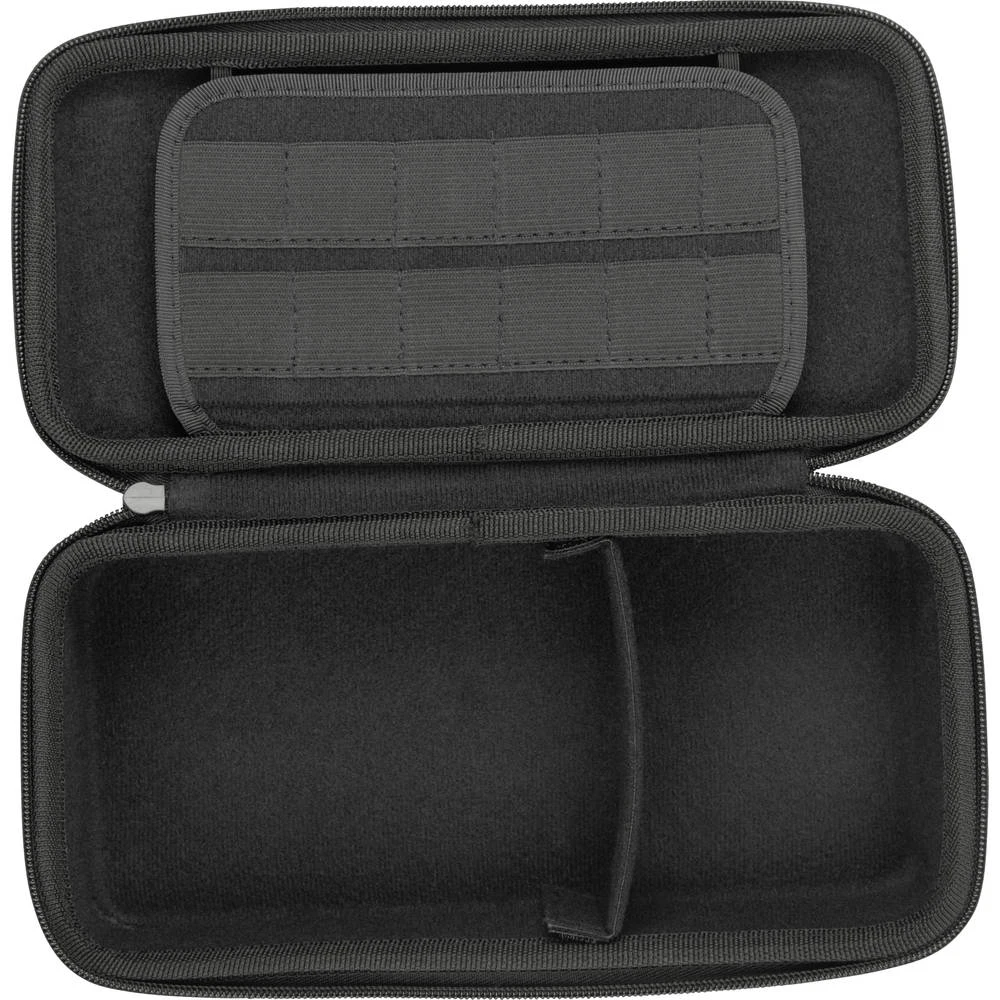 Heb je je Nintendo Switch altijd bij je, waar je ook naartoe gaat? Dan heb je absoluut de Caddy Pro XL protection case nodig. Deze hoogwaardige, schokbestendige hoes beschermt je console onderweg en biedt tegelijkertijd voldoende ruimte voor games, controllers en accessoires. De Switch kan eenvoudig met elastische banden aan de Caddy Pro XL worden bevestigd, en hij is dankzij de geïntegreerde screenprotector altijd veilig opgeborgen. Verder kunnen er tien games en twee microSD-kaarten in de daarvoor bestemde slots worden ondergebracht. De stekker en een Pro Controller of extra Joy-Cons kunnen opgeborgen worden in twee grote vakken. Ondanks de royale opbergruimte meet de Caddy Pro XL slechts 26 × 13 × 7,5 cm (L x B x H) en past in elke rugzak of handtas.