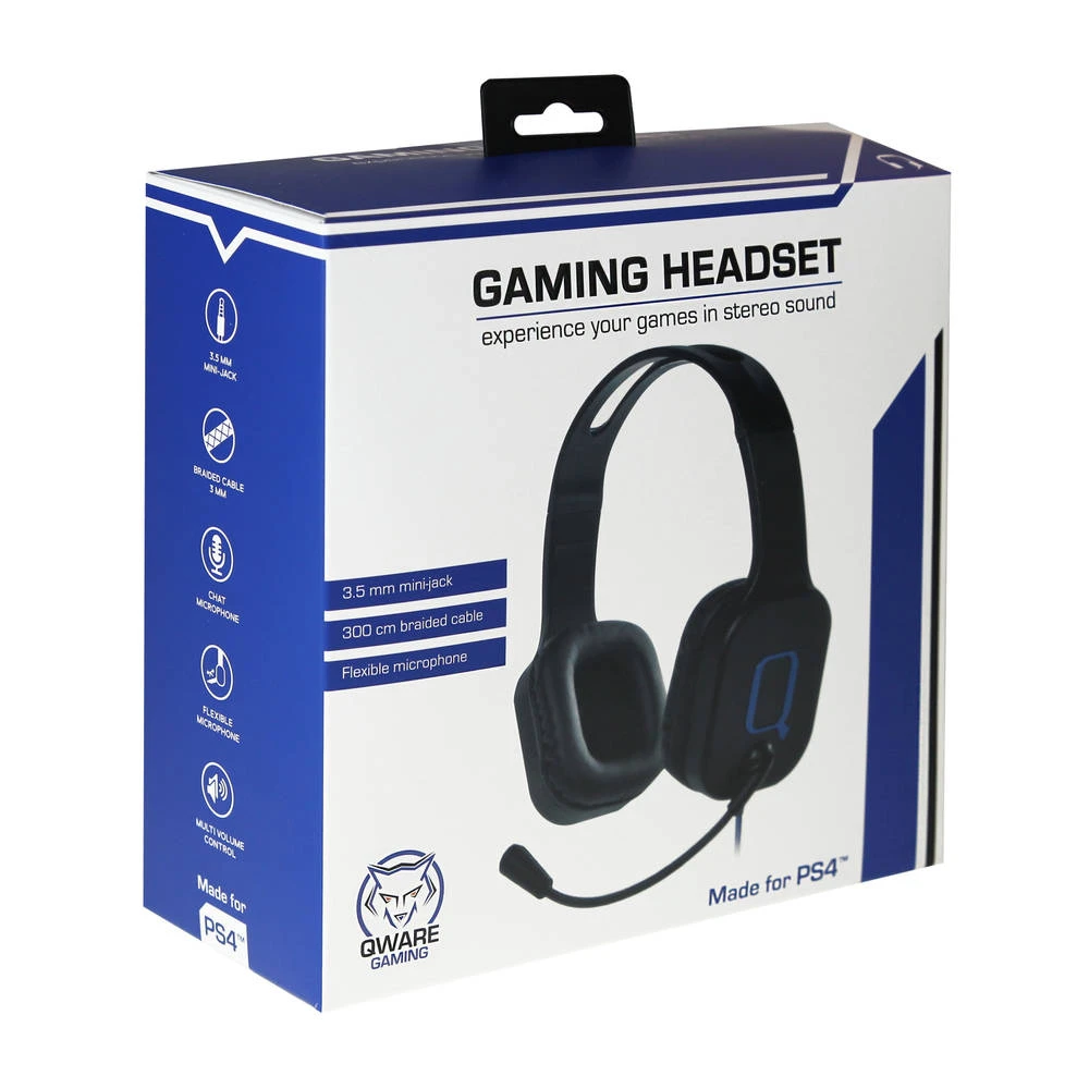 Met deze lichtgewicht Qware gaming headset voor de PlayStation 4, heb je dankzij de verstelbare hoofdband en zachte oorkussens urenlang game plezier. Door de 3,5 mm jack-aansluiting ook geschikt voor PC gaming.