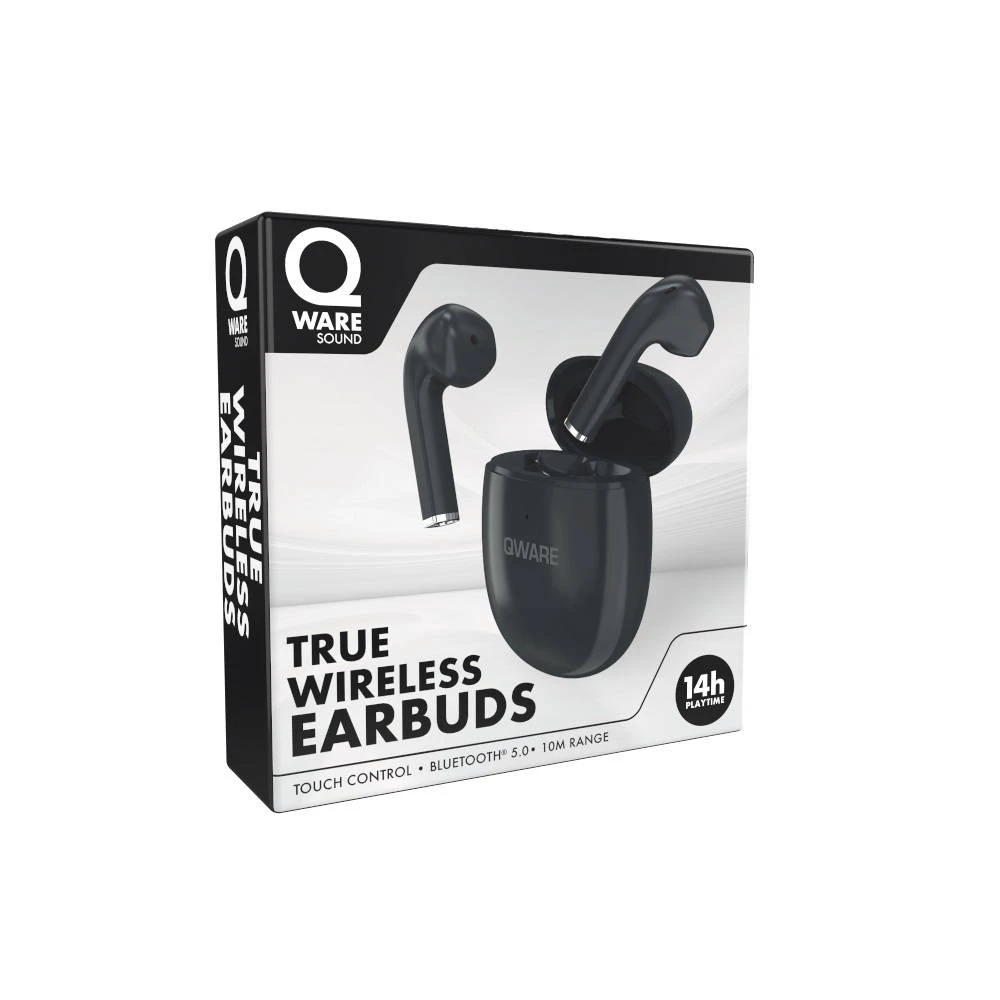Beluister met de zwarte Qware Sound True draadloze oordopjes in stijl je muziek of favoriete luisterprogramma’s. Uitgerust met een ingebouwde microfoon.
