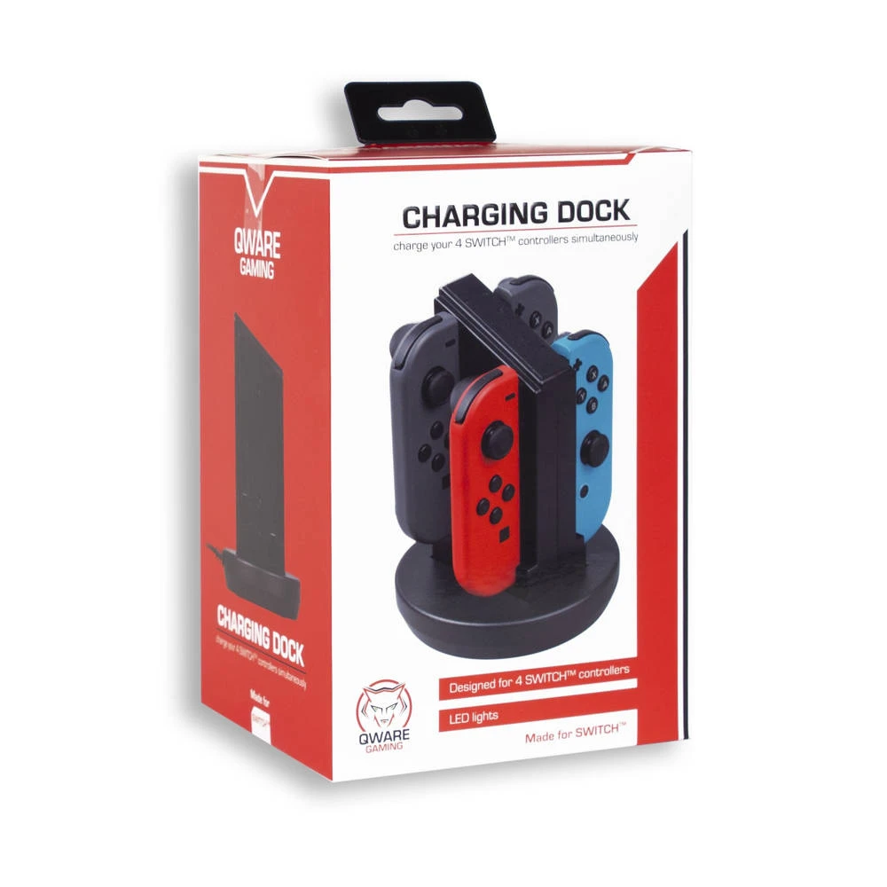 Dit Qware oplaadstation voor de Nintendo Switch is ontworpen om tot vier Joy-Con-controllers razendsnel tegelijk op te laden.